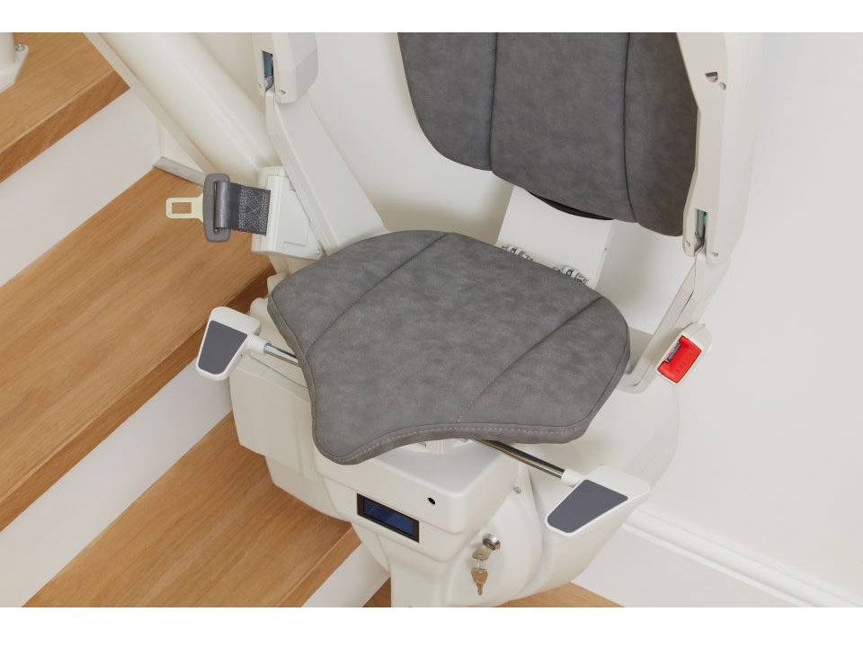 Stolens design är gjord för branta och smala trappor. Stolen är mycket lätt att kliva av och på och erbjuder olika fotstödshöjder som kan justeras vid installationen.