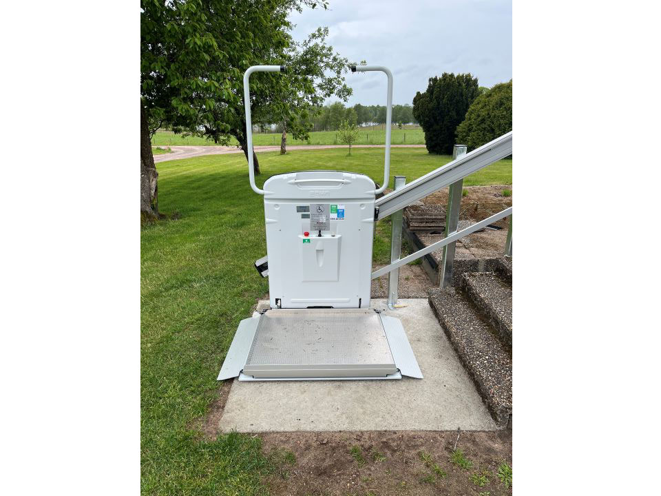 Motorer och elektronik har diskret placerats i ryggen. Startsystemet ger en behaglig, mjuk start som följs av lugn och jämn gång. Det höga bakstycket ger extra skydd mot väggen och handtaget sitter på bekväm nivå. Hissen kan också utrustas med fällsits.